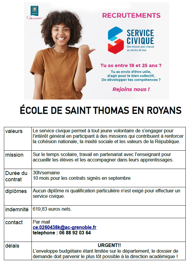 Si vous avez dans votre entourage (enfants, proches) des jeunes motivés par cet engagement, nous vous remercions de bien vouloir leur transmettre les modalités d’inscription ci-dessous.