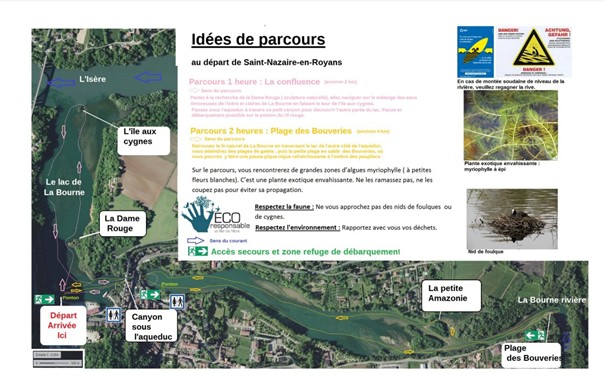 - Des descentes de l’Isère entre La Sône et Saint Nazaire en Royans (parcours de 8 à 12km),